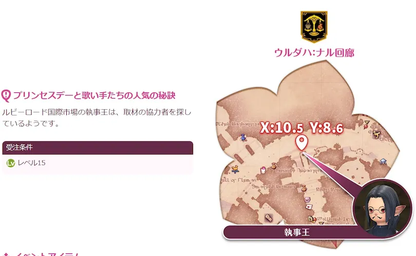シーズナルイベントクエストは、ウルダハのナル回廊にいるNPC"執事王"から受注できます!